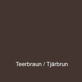 Farbton: Teerbraun (Tjärbrun), farblich am ehesten ähnlich zu RAL 8017 (Schokoladenbraun), jedoch deutlich dunkler als RAL 8017, vergleichbar mit Palisander bzw. sehr dunkler Zartbitterschokolade
