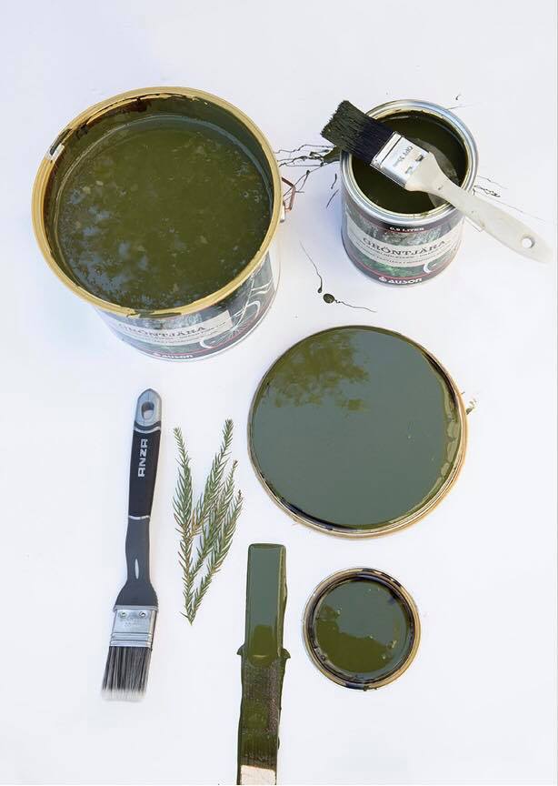 Nadelholzteer GRÖNTJÄRA ist keine Farbe, die auf der Oberfläche liegt, eher wie ein fettes Öl, welches langsam ins Holz einzieht. Durch die hohe Pigmentierung entsteht jedoch der Eindruck, daß es eine Farbe sei.