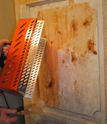 Die IR-Strahlung des Spotheaters löst die alte Farbe von der Oberfläche, wodurch das Abziehen der Farbschicht extrem einfach wird